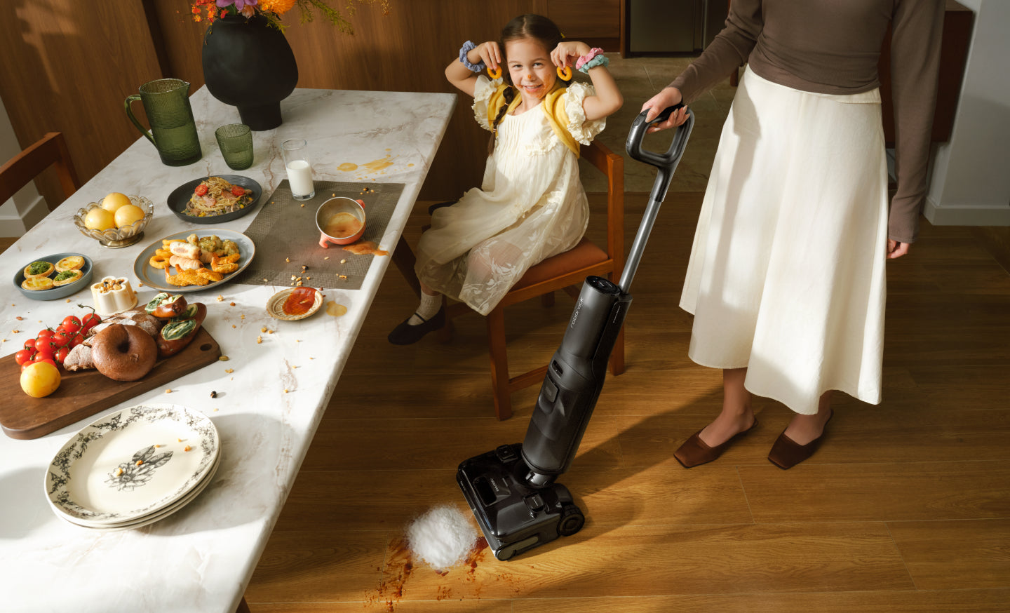 Selama pembersihan, sistem mendeteksi level kotorannya secara otomatis serta menyesuaikan pengisapan dan aliran air dengan tepat*. Sistem ini membersihkan noda membandel secara mendalam dan menyegarkan noda yang lebih ringan dengan cepat — menghemat waktu, tenaga, dan jalan berulang.