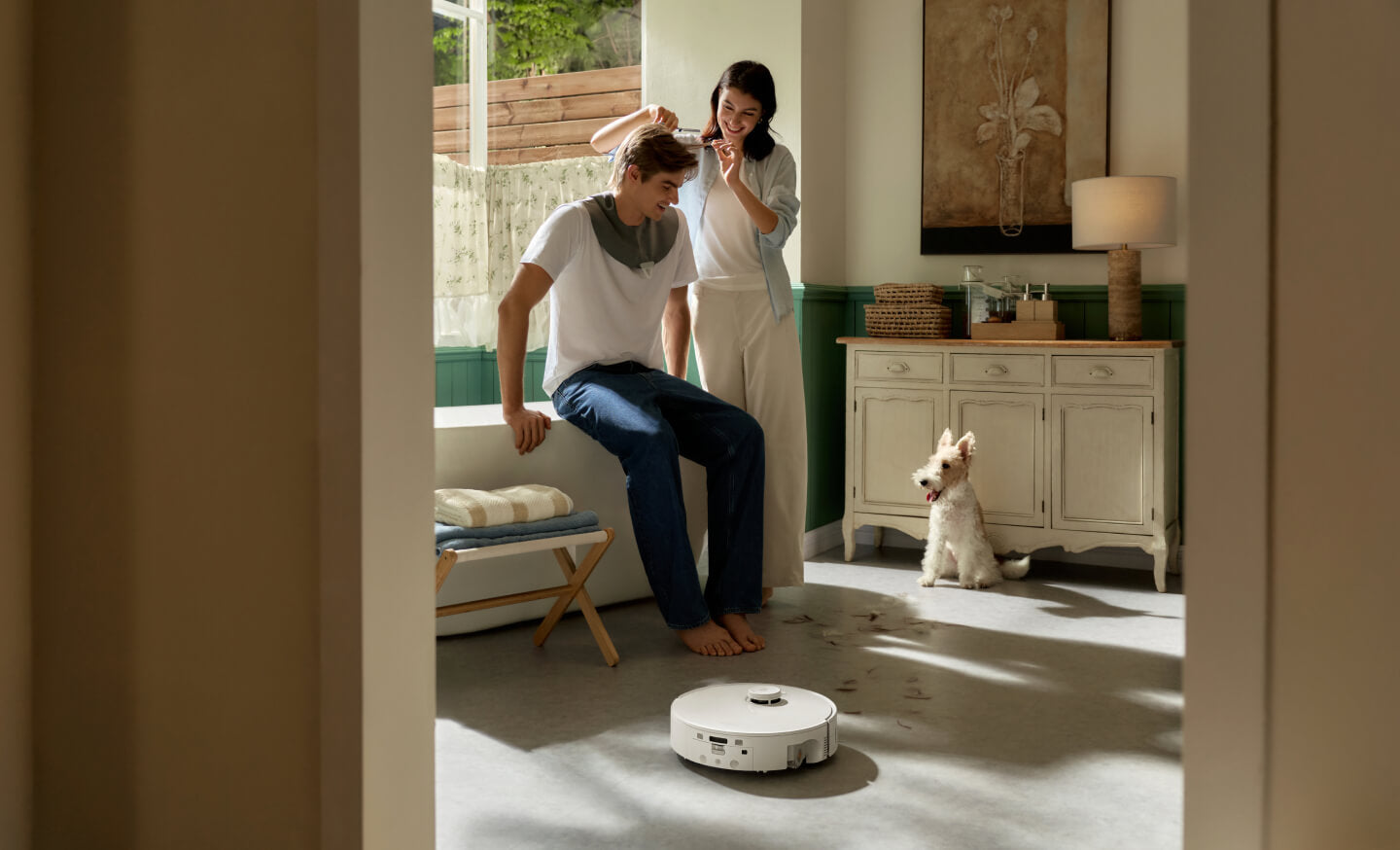Tidak perlu merapikan sebelum melakukan pembersihan. Didukung oleh cahaya terstruktur dan kamera RGB, robot ini mendeteksi dan menghindari lebih dari 200 jenis benda umum—mulai dari kabel kusut hingga kejutan dari hewan peliharaan—siang atau malam.